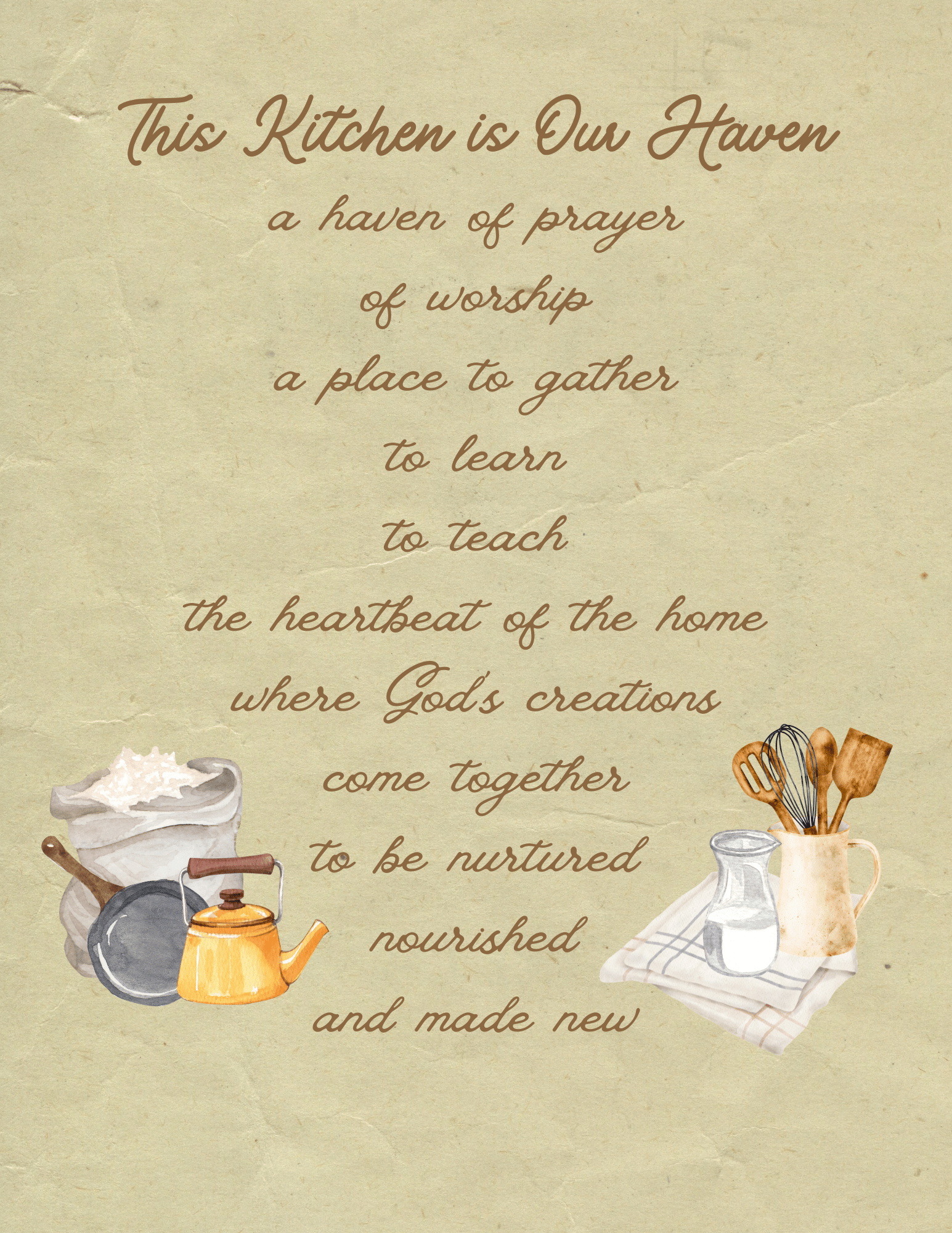 I wanted to create a beauty poem that served as a reminder to me that my kitchen is the heart of my home. Why I take time to teach my kids, make each meal from scratch, spend hours meal planning, prepping, and creating nourishing dishes. I pray this poster can be the same reminder to you as well.